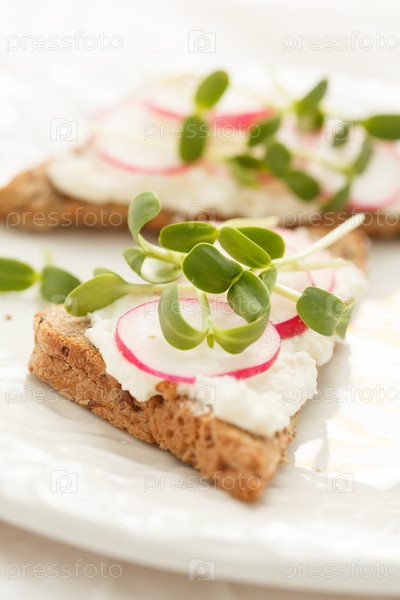 Бутерброды с редисом и ростками подсолнечника