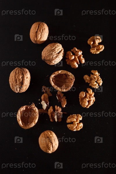 Грецкие орехи на черном фоне
