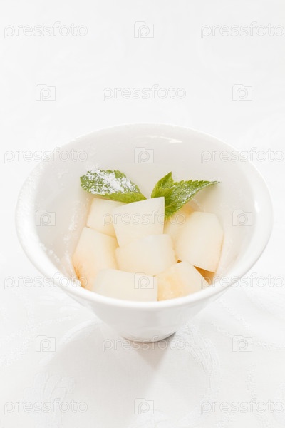 Листья мяты на кубиках свежей дыни