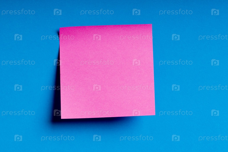 Розовый стикер на голубой стене