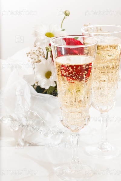 Шампанское и свадебные цветы