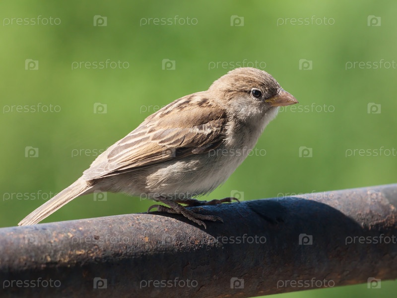 Воробей на зеленом фоне