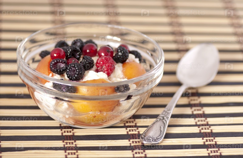 Десерт из творога, свежих ягод и абрикоса