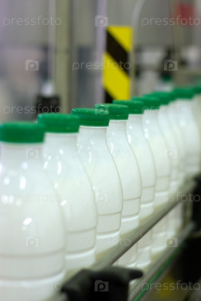 Молокозавод. Конвейер с бутылками молока