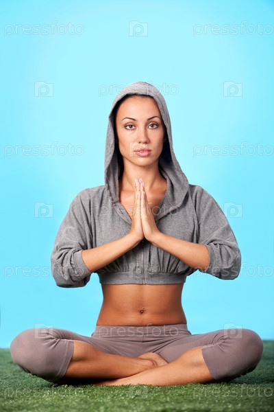 Девушка, сидящая в позе лотоса на траве