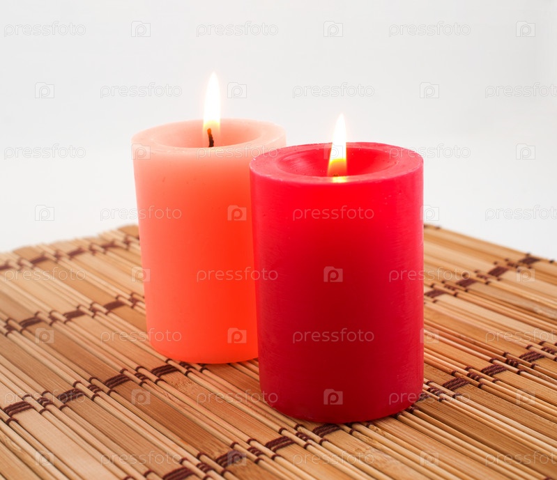 Зажженные свечи на бамбуковой циновке