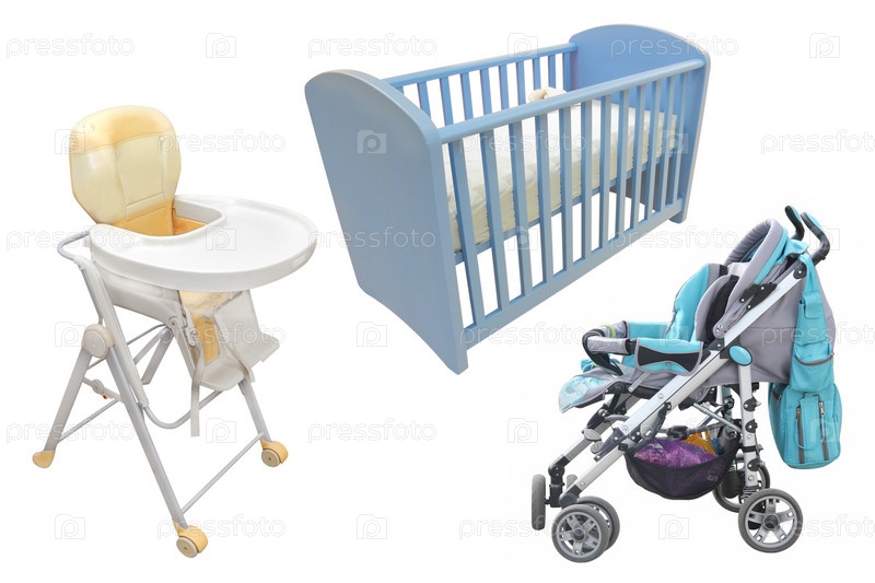 Детский стульчик, кроватка и коляска