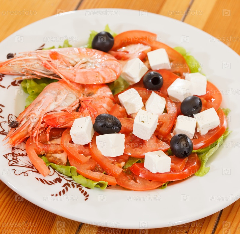 Креветки с греческим салатом
