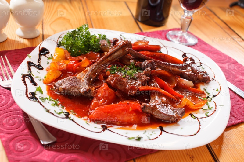 Приготовленные на гриле ребра с овощами