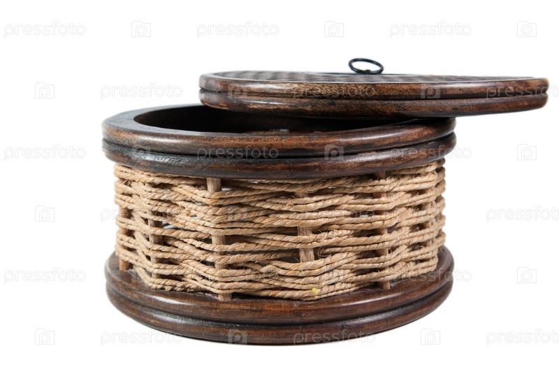 Старинная круглая плетеная шкатулка