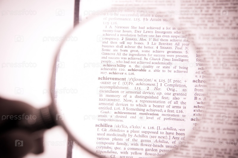 Увеличительное стекло на слове "достижение"