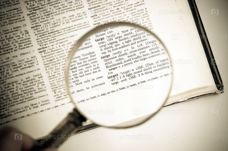 Увеличительное стекло на слове ЦЕЛЬ