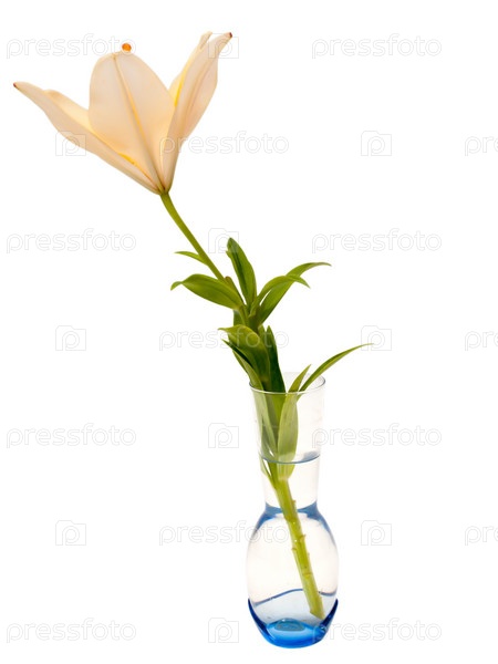 Бежевая лилия в вазе, изолированная на белом фоне