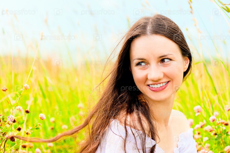Красивая девушка на цветочном луге
