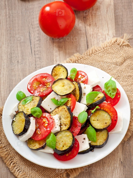 Салат из баклажанов с помидорами и сыром фета