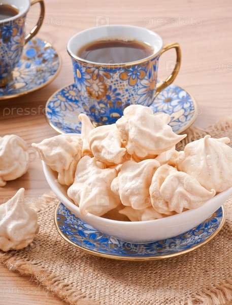 Безе на тарелке и кофе