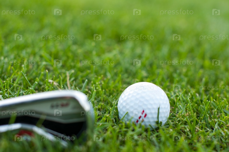 Мяч для гольфа на зеленой лужайке
