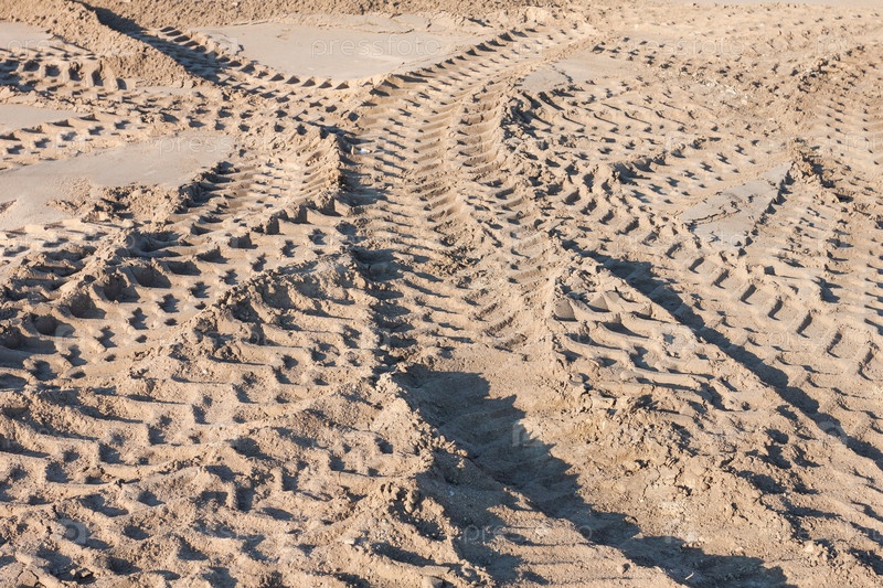 Следы колес трактора на песчаной дороге