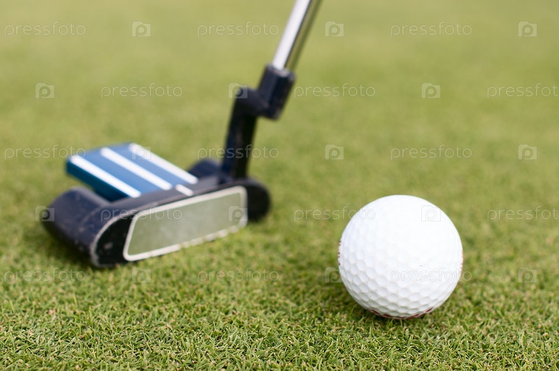 Мяч для гольфа на зеленом лугу