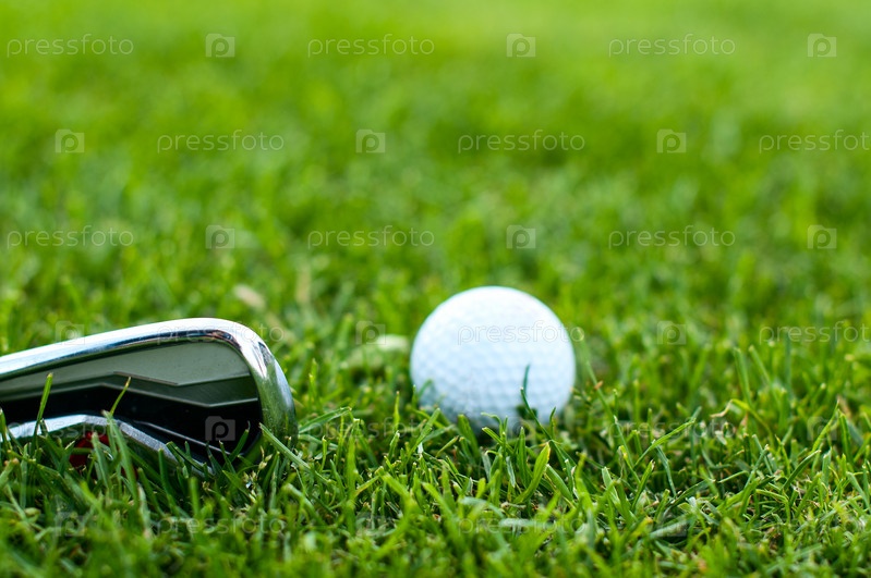 Мяч для гольфа на зеленом лугу