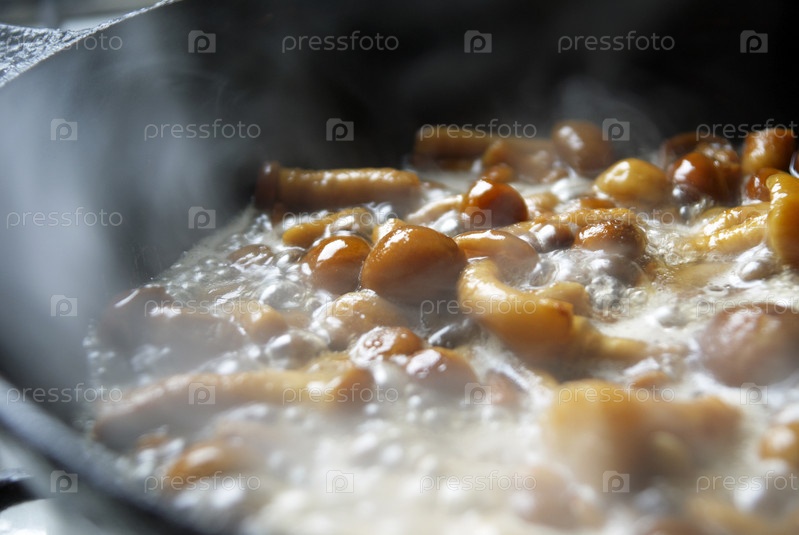 Опята жарятся на сковороде