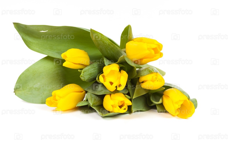 Букет свежих желтых тюльпанов, изолированный на белом фоне