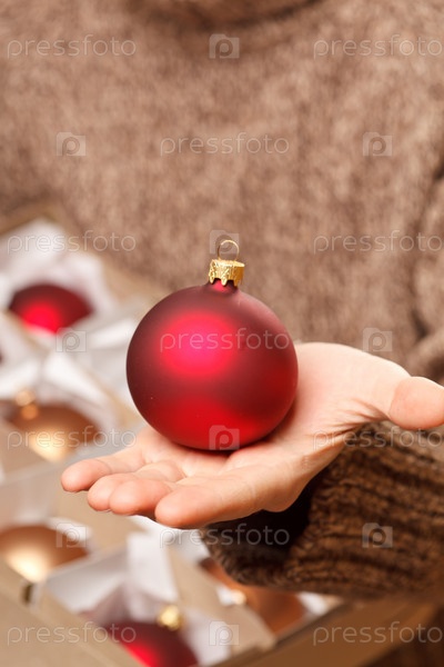 Рождественский шар в руках