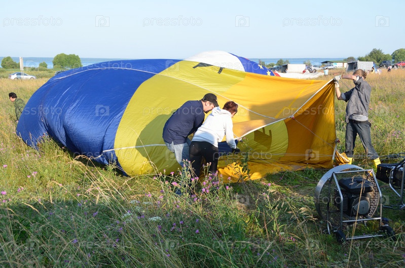 Ежегодный фестиваль воздухоплавания «Золотое кольцо России» в Переславле-Залесском. Подготовка воздушного шара к полету