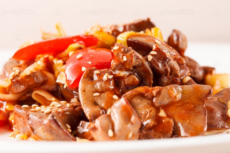 Печень с овощами