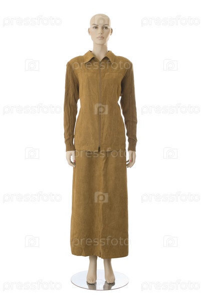 Женский манекен в длинном платье. Изолирован на белом фоне
