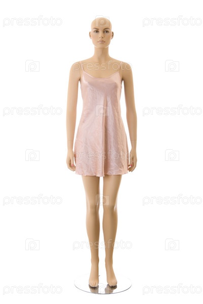 Женский манекен в розовом платье. Изолирован на белом фоне