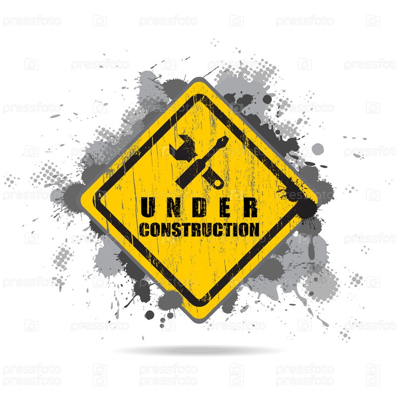 Векторный гранжевый дорожный знак строительства с инструментами