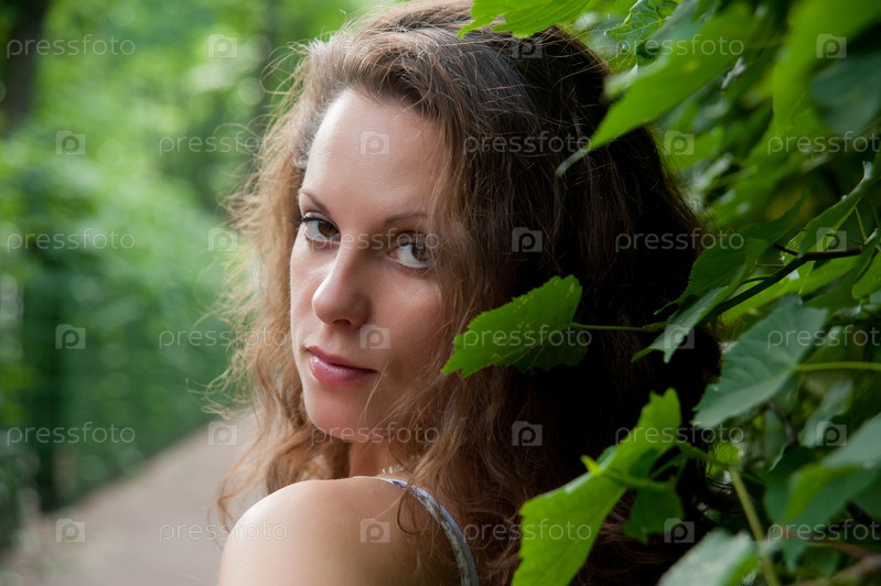 Фотомодель на фоне листвы