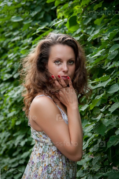 Фотомодель на фоне листвы