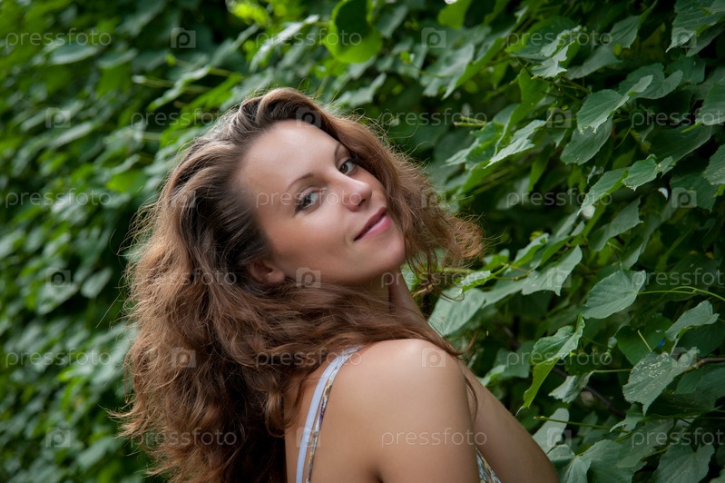 Фотомодель на фоне листвы
