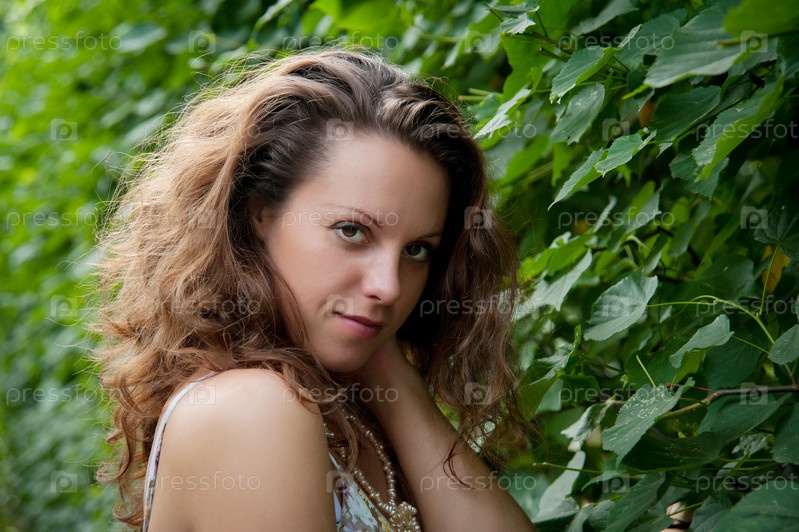 Фотомодель на фоне листвы