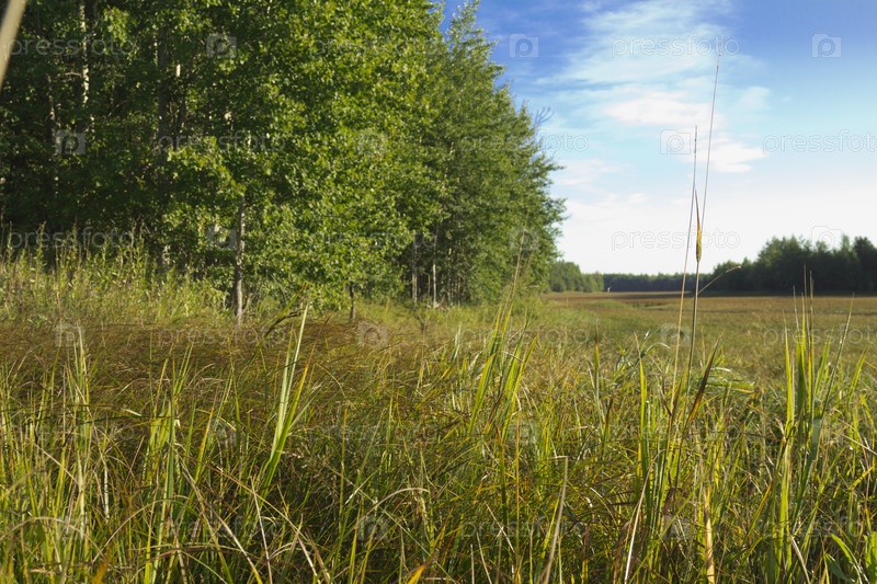 Русло высохшей реки, заросшее травой и камышом