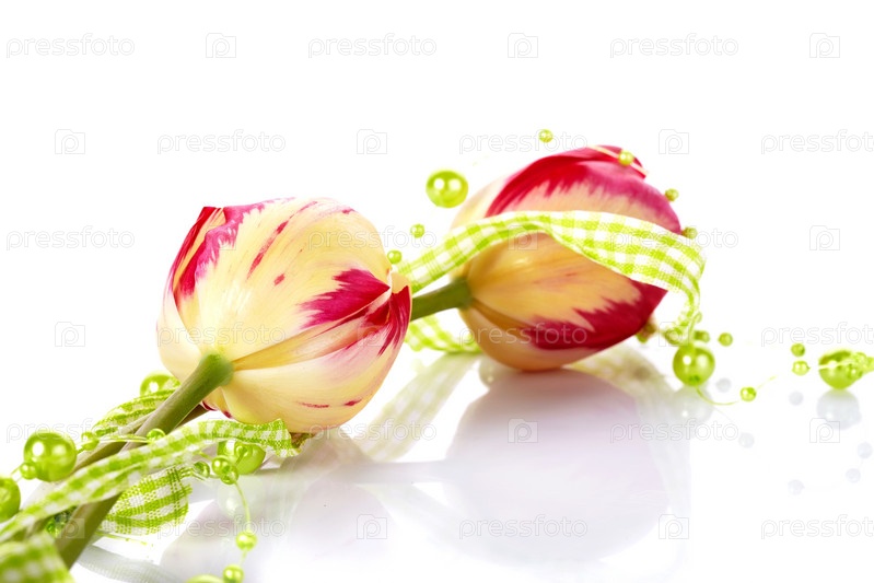 Два тюльпана и зеленые бусы