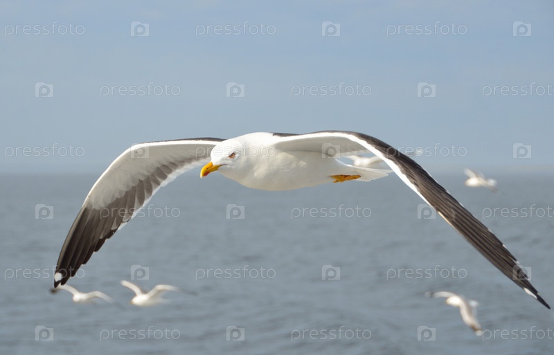 Чайка в полете над Белым морем
