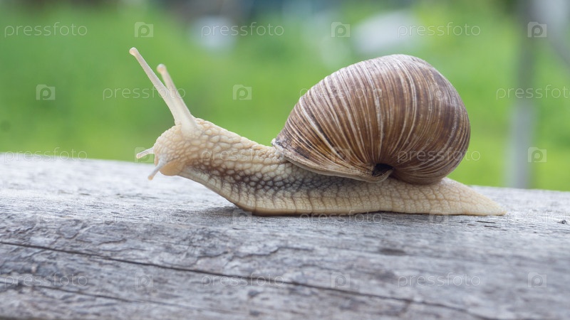 Улитка ползет по деревянной доске
