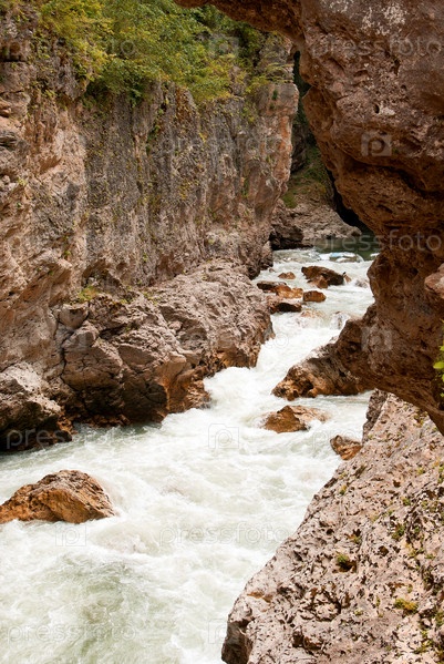 Бурная река в красивом горном ущелье