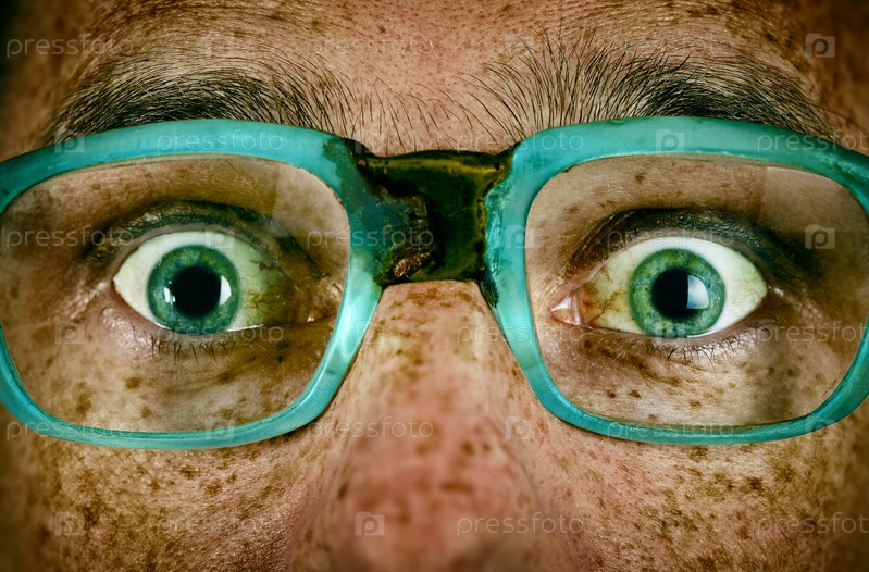 Испуганный взгляд мужчины в старых очках