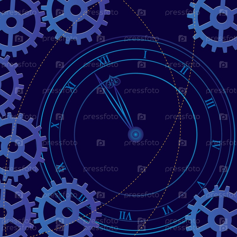 Иллюстрация часов и часовых механизмов на синем фоне