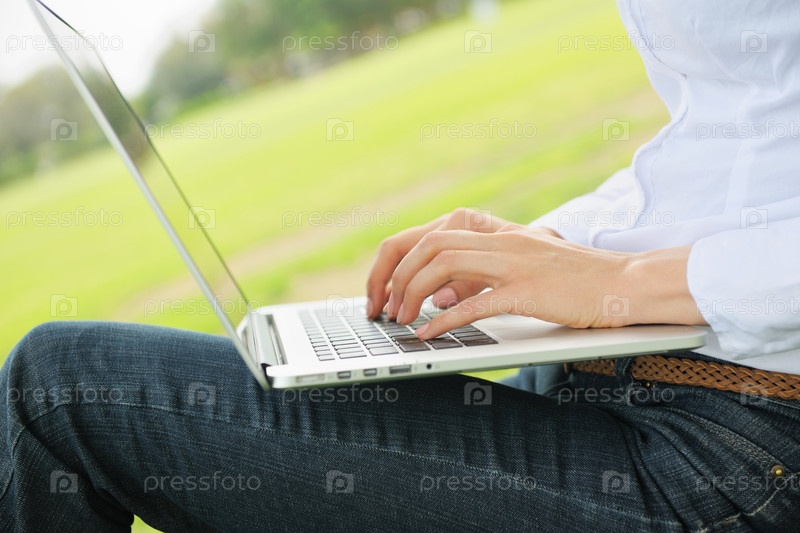 Женщина с ноутбуком в парке