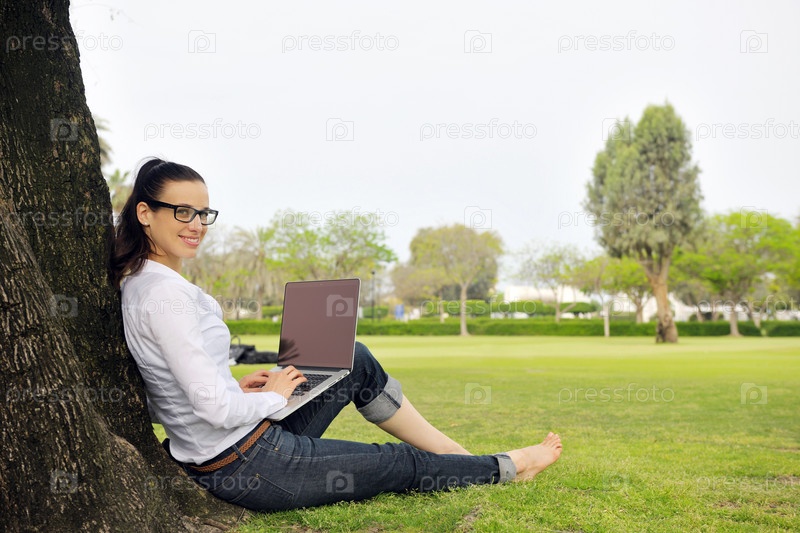 Женщина с ноутбуком в парке