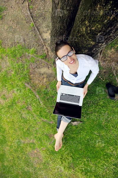 Женщина с ноутбуком в парке