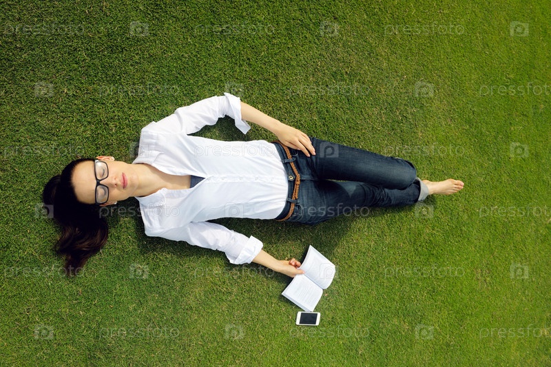 Молодая женщина читает книгу в парке
