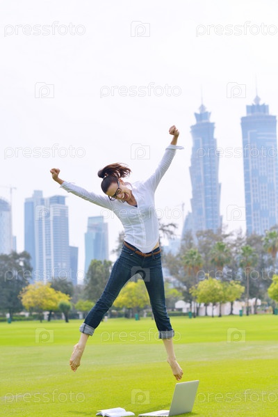 Женщина с ноутбуком в парке