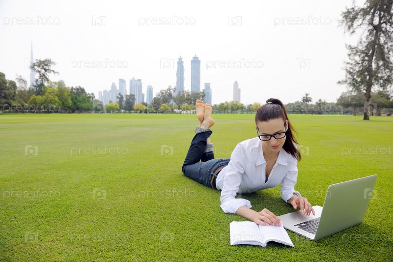 Женщина с ноутбуком в парке