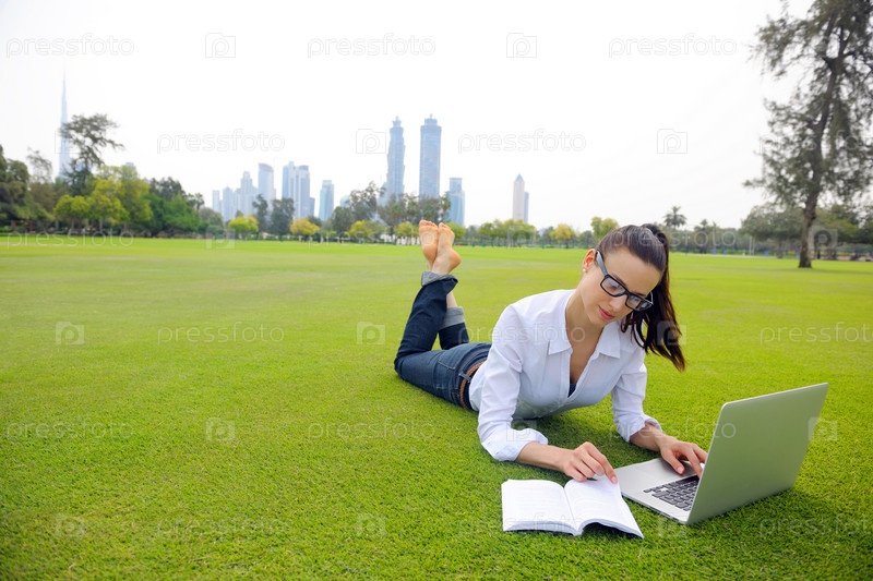 Женщина с ноутбуком в парке